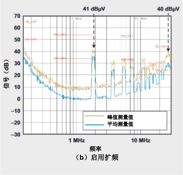 圖2:禁用和啟用擴(kuò)頻的噪聲比較